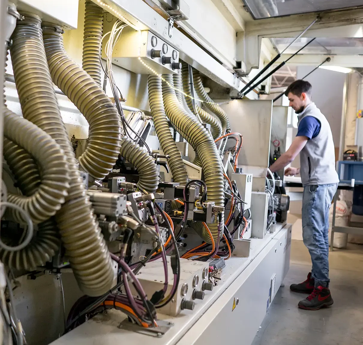 Jesteśmy specjalistami w obszarze serwisu i konserwacji maszyn CNC, okleiniarek oraz pił panelowych. Oferujemy także kompleksowe usługi montażu i uruchomienia nowych maszyn, obejmujące przyłącza pneumatyczne, elektryczne i wyciągowe. Dodatkowo, świadczymy usługi przezwajania silników elektrycznych. Działamy z pasją i precyzją, dbając o sprawność i trwałość maszyn. Skontaktuj się z nami, jeśli potrzebujesz profesjonalnego podejścia do serwisu i obsługi maszyn przemysłowych.